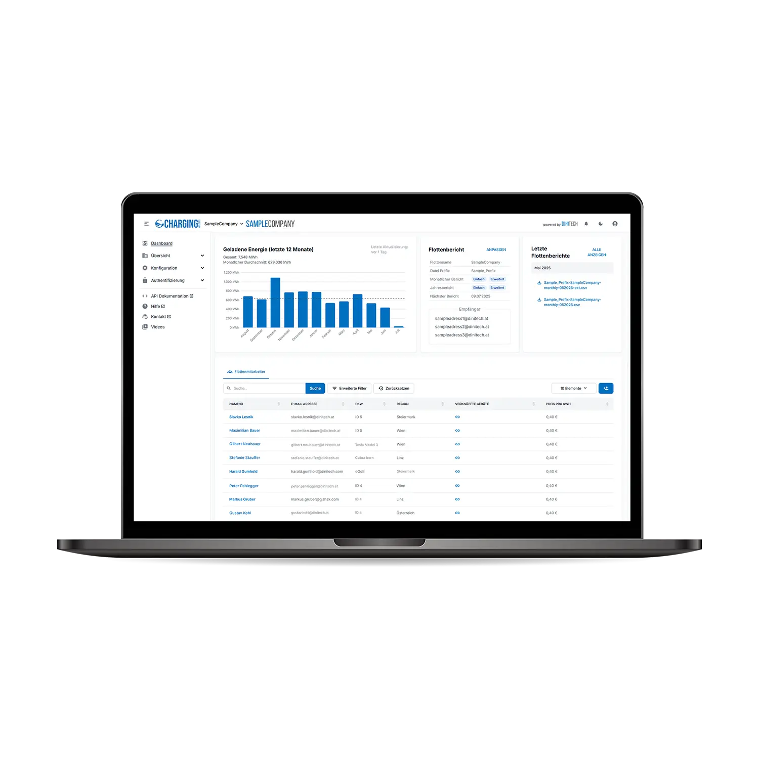 Mit Charging4Fleets können Mitarbeitende ihren Firmenwagen zuhause oder unterwegs laden, während Arbeitgeber alle Ladevorgänge einfach, transparent und automatisiert abrechnen können – perfekt für Dienstwagen und große Elektroauto-Flotten.